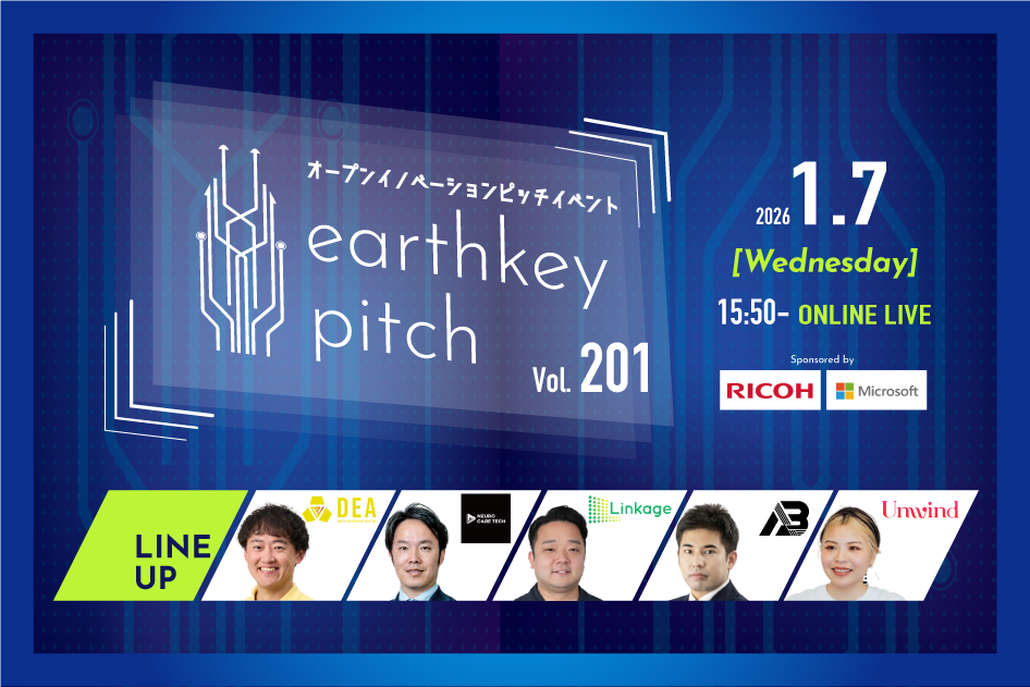 【新規事業担当者必見!!】未来を覗けるスタートアップピッチイベント 【earthkey pitch vol.201】