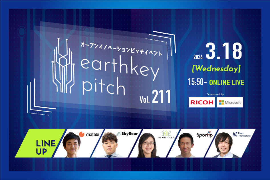 【新規事業担当者必見!!】未来を覗けるスタートアップピッチイベント 【earthkey pitch vol.211】