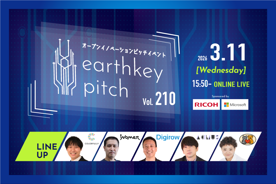 【新規事業担当者必見!!】未来を覗けるスタートアップピッチイベント 【earthkey pitch vol.210】