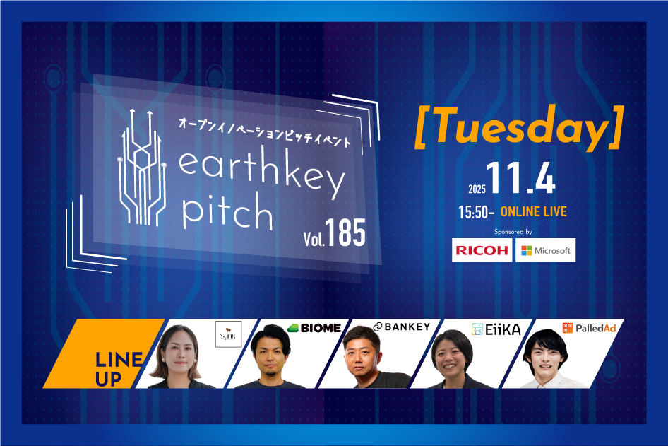 【新規事業担当者必見!!】未来を覗けるスタートアップピッチイベント 【earthkey pitch vol.185】
