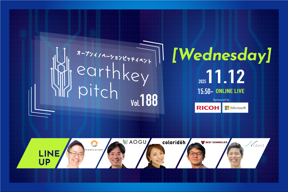 【新規事業担当者必見!!】未来を覗けるスタートアップピッチイベント 【earthkey pitch vol.188】